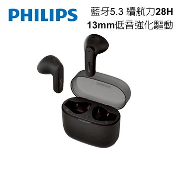 PHILIPS TAT1109 強低音藍牙耳機 24小時播放 AI麥克風 防水抗汗 黑/白