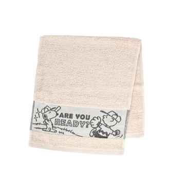 [家速配]史努比素色緞檔緹花毛巾-棕