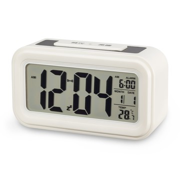 Coby 靜音LCD現代鬧鐘桌鐘 白色
