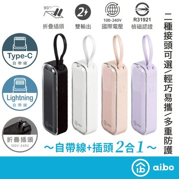 -商品名稱:aibo AC50 自帶線插頭二合一 22.5W快充行動電源(自帶Lightning線)