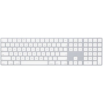 含數字鍵盤的 Magic Keyboard 延伸了鍵盤佈局,加入用於快速捲動的文件導覽控制鍵,以及適合玩遊戲的全尺寸方向鍵。每個按鍵下方均為剪刀式結構,有助提升穩定性;此外,最佳化的按鍵動作和低斜度的鍵盤設計,為你提供舒適且精確的打字體驗。數字鍵盤也非常適合用於試算表和財務應用程式上。而內建可充電式電池的長效表現令人讚歎,每次完全充電後能為鍵盤提供約一個月或更長時間的電力。1