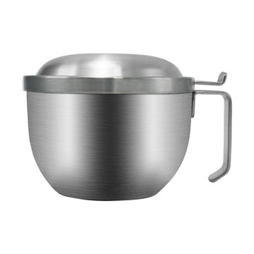 新錸家居 不鏽鋼雙層隔熱泡麵碗附蓋子 1.3L 防燙手大容量湯碗 1個 銀色