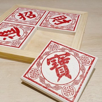 MBM珪藻土花磚杯墊組,一盒4入共有二種款式可選(包含杯墊木頭收納架1入)