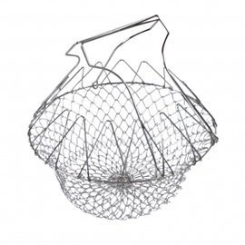 可折疊伸縮304不鏽鋼過濾瀝水油炸籃 多種用途 清洗蔬菜水果也方便 23 x 12 x 16cm 1個