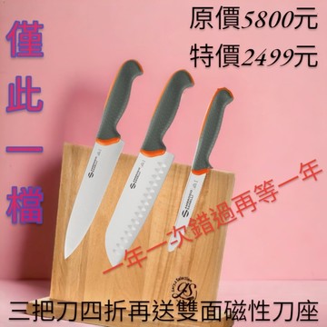 SANELLI 義大利製 1111活動僅此一檔 TECNA系列20cm主廚刀+18cm三德刀+11cm番茄刀+磁性刀架