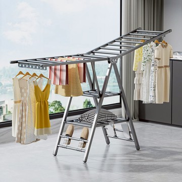 不銹鋼晾衣架落地折疊雙桿式曬衣架簡易置物架陽臺室內涼衣架曬架