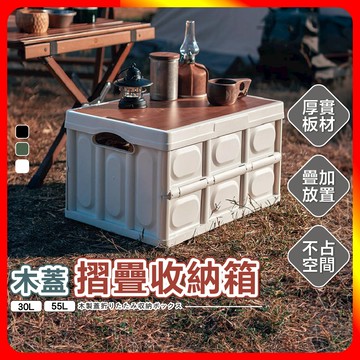 威瑪索 車載56L木蓋收納箱/高承重摺疊收納箱-(2色)