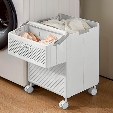 【AOTTO】大容量附輪折疊收納洗衣籃 髒衣籃-白色(AS-203W)