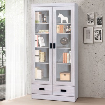 文創集 泰雷2.6尺二門二抽高書櫃-79.3x32x184.5cm免組