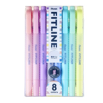 【Pentel 飛龍】FITLINE 雙頭螢光筆 粉彩色系 3.5/0.9mm 八色套裝/盒 SLW11P-8T