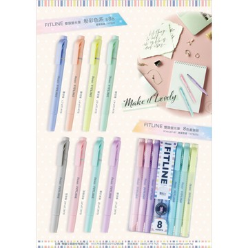 【Pentel 飛龍】FITLINE 雙頭螢光筆 粉彩色系 3.5/0.9mm 八色套裝/盒 SLW11P-8T