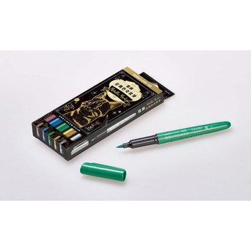 採用不具腐蝕性的水性配方,且具備耐光的特性,適用於塑膠、陶瓷、玻璃、光碟與各種金屬材質,甚至可安心塗寫在怕被破壞的相片材質表面;用於深色表面上更能突顯金屬色澤。特殊軟毛筆刷更能自由掌握線條粗細,隨意創作書法、花體字等字體,以及各式圖案與花紋。