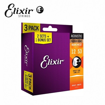 Elixir 16545 Nanoweb 薄包覆 磷青銅 木吉他套弦三包裝 12-53【敦煌樂器】