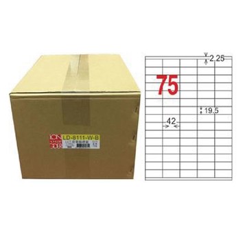 【龍德】LONGDER 三用電腦標籤 A4 75格 19.5*42mm白色1000張/箱 LD-8111-W-B(適用雷射、噴墨、影印)