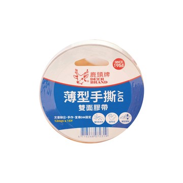 【四維】鹿頭牌 薄型手撕雙面膠帶 12mm X 15Y 24捲/盒 DSSLM(原型號DFS3)