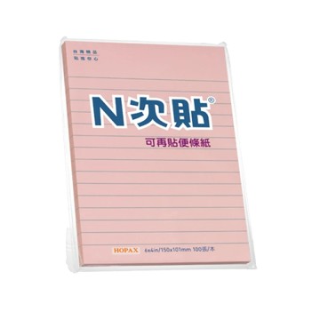 ◎品 名:N次貼 61720~61723 橫線型可再貼便條紙 6”x4”(152x101mm),黃、粉紅、藍、綠