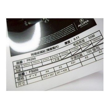 ●薄燈箱片+背膠 ●背面噴墨,正面背膠