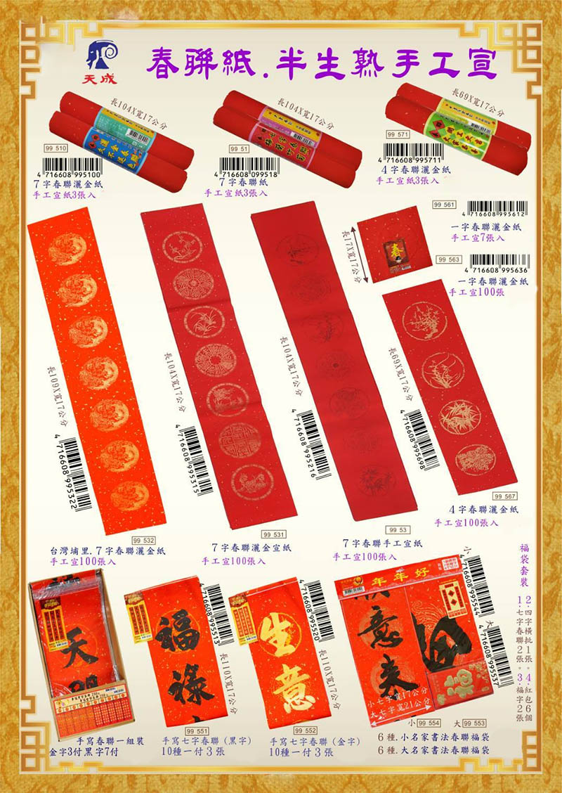 天成筆墨莊 春聯紙 4字春聯 灑金紙 手工宣紙 69X17CMX3張入X6包 /組 4716608995711