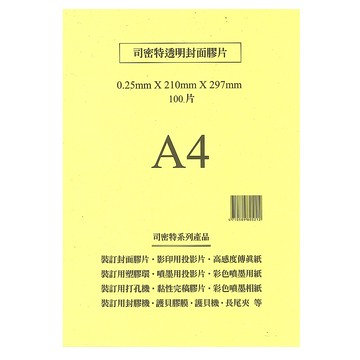 商品名稱 : 司密特 Schmidt 裝訂用封面膠片 0.25mmA4 (亮面) 100張 / 包