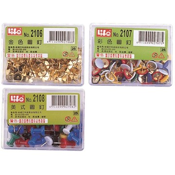 徠福 豪華型 金色圖釘/彩色圖釘/美式圖釘 / 盒 NO.2106/NO.2107/NO.2108