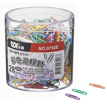 【SDI 手牌】28mm 彩色 迴紋針 塑膠盒 500支入 /筒 0792E