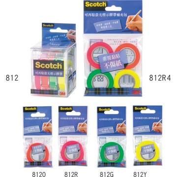 3M Scotch可再貼螢光活貼膠帶補充包/812R4/4色/9mmx20M/包