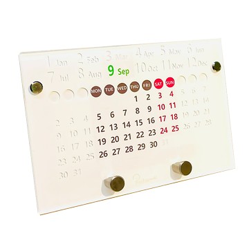 O’day 萬年曆面板上的月份、星期與日期是沒有顏色的,藉由主要組成部件本身背景色相互應用,呈現更貼近使用者熟悉的月曆顯示,徹底改變現有萬年曆之不足,其主要特色為:-週六日可以不同色-每月不再只是固定的31天-大大的月份顯示-降低不必要的數字產生的視覺干擾-簡單的直覺式操作-清晰、簡要、樸實的設計語言-附加筆座或手機座功能-表面可當小白版當記事備忘使用提高萬年曆的實用性、價值感與被接受度,藉由長年循環操作使用,達到減少資源浪費、降低垃圾廢棄、環保永續目的。▌為改善而生,O’day來了!▌專利摟空結構設計,一次改善四大問題#■ 巧妙地降低沒有必要的視覺干擾■ 週六日可以是不同色■ 每月不再只是呆呆的31天■ 大大清晰的月份顯示▌結構嚴謹,操作簡便▌三步驟,簡單完成月曆顯示1.\t設定月份2.\t月曆校對3.\t調整當月日數