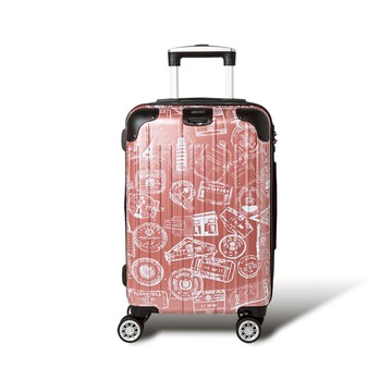 【Alldma鷗德馬】24吋郵戳拉鏈行李箱S4-玫金郵(贈保護套C2+B2棋盤束帶)