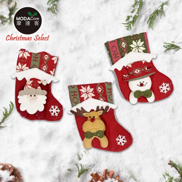 摩達客耶誕-17吋可愛蘇格蘭紅格紋造型聖誕襪(雪人款)