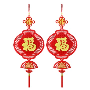 吉祥扇形福新年吊飾2入3組#203(新春過年掛飾/流蘇開運掛件/窗花吊飾毛氈掛飾/開運招財/入厝室內裝飾)