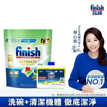 finish亮碟 洗碗機全效合一軟水4件組(全效合一洗碗塊100顆+光潔劑400ml+軟水鹽1kg x2)