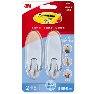 3M 大型無痕透明掛鉤 37093