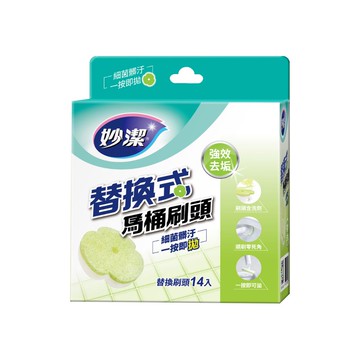 妙潔替換式馬桶刷-清新潔淨1桿1座14片