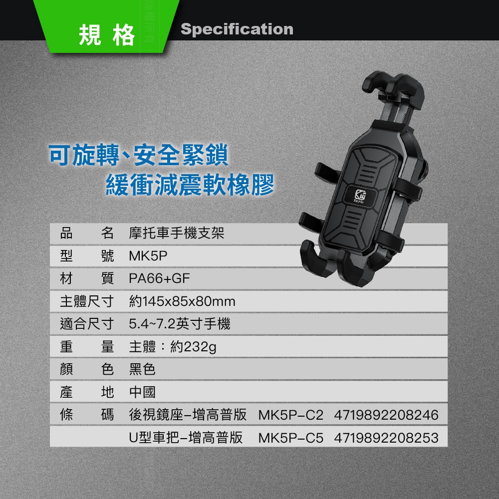 [家速配]凱威格鋼固爪摩托車手機支架M22
