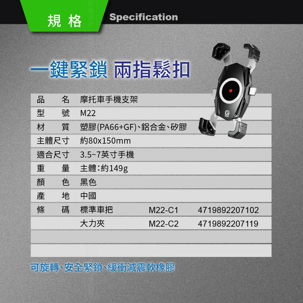 [家速配]凱威格鋼固爪摩托車手機支架M22