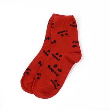 【WAJI】萬聖節主題襪 中筒襪 1/2襪-紅科學怪人 襪子 成人襪