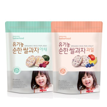 【韓國 BEBEFOOD】寶寶福德 糙米餅 副食品寶寶磨牙餅乾 2口味(蔬菜/水果)(25g)