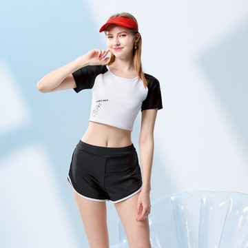 【SARLEE】熱銷款 有袖兩截褲泳衣(附襯墊及泳帽)