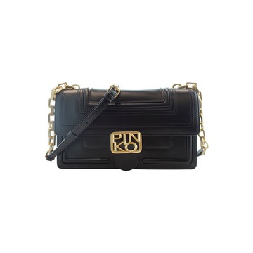PINKO黑色方壓紋PINKO字母單肩包