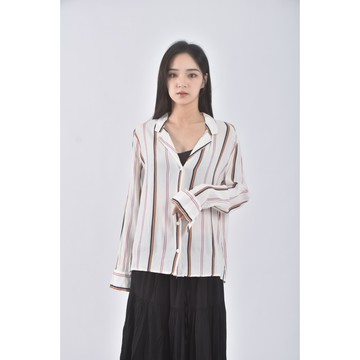 (S) 質感條紋杏色襯衫上衣