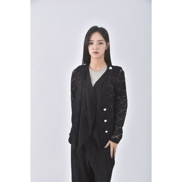(XL) the madre西裝拼接網紗袖墊肩黑色外套