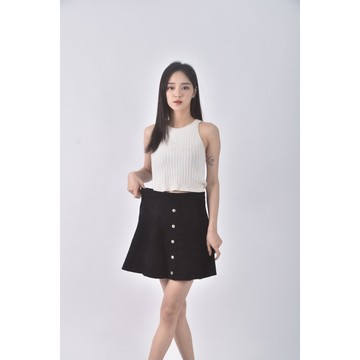 灰棉排扣A字裙