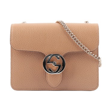GUCCI 金屬雙G Logo荔枝皮革方形斜背包/裸粉色