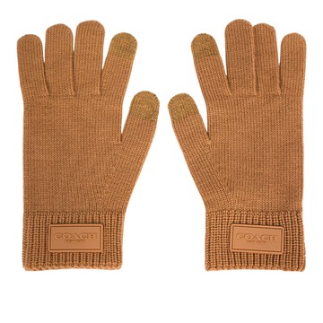COACH 方形經典馬車標牌羊毛手套 L/XL /淺焦糖色