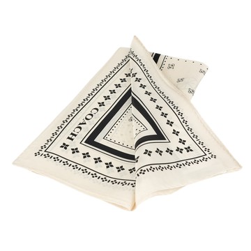 COACH 馬車圖案與圓點絲質方巾/白色/黑色