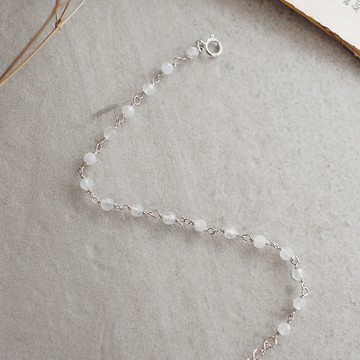 以18顆小顆月光石串成,帶有不同的折光,石頭深淺有別,因此手鍊有層次感。