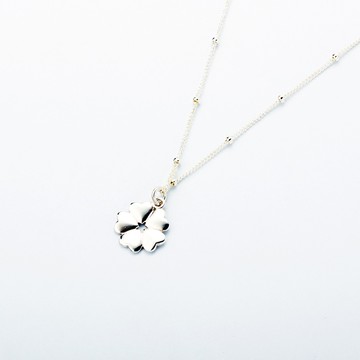 RJ New York 單鑽四葉草鏤空幾何雙圈鎖骨項鍊(銀色)