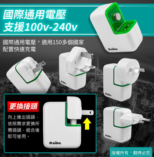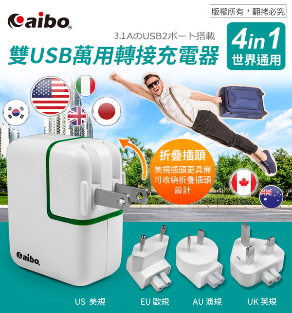 aibo 世界通用 3.1A雙USB萬國轉接充電器