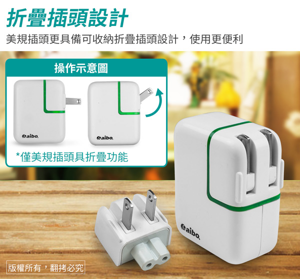 2.折疊插頭:美規插頭更具備可收納折疊插頭設計,使用更便利
