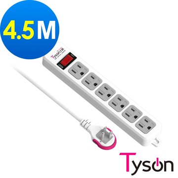 Tyson太順電業 TS-316AS 3孔1切6座延長線(拉環扁插)-4.5米